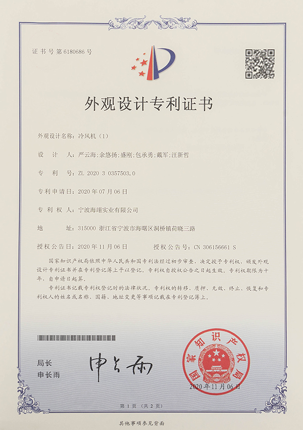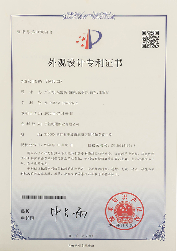 外觀設(shè)計(jì)專(zhuān)利證書(shū)